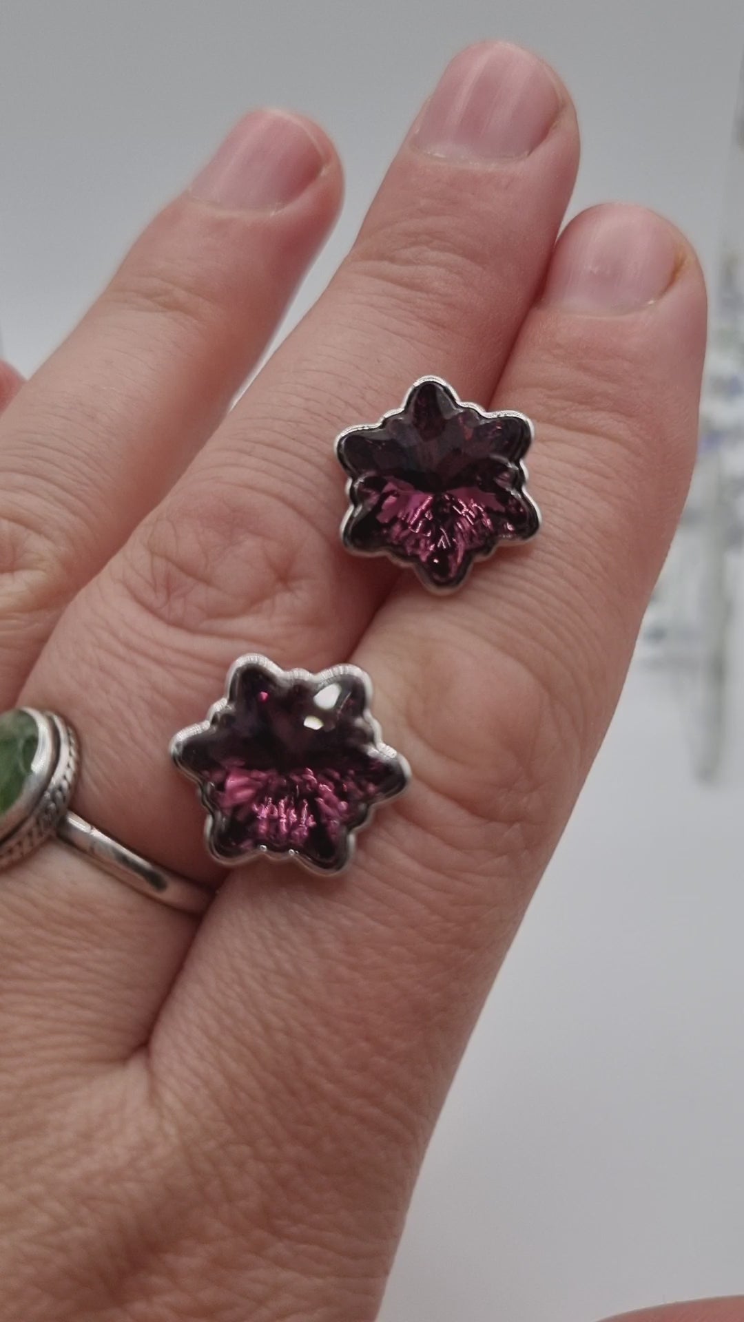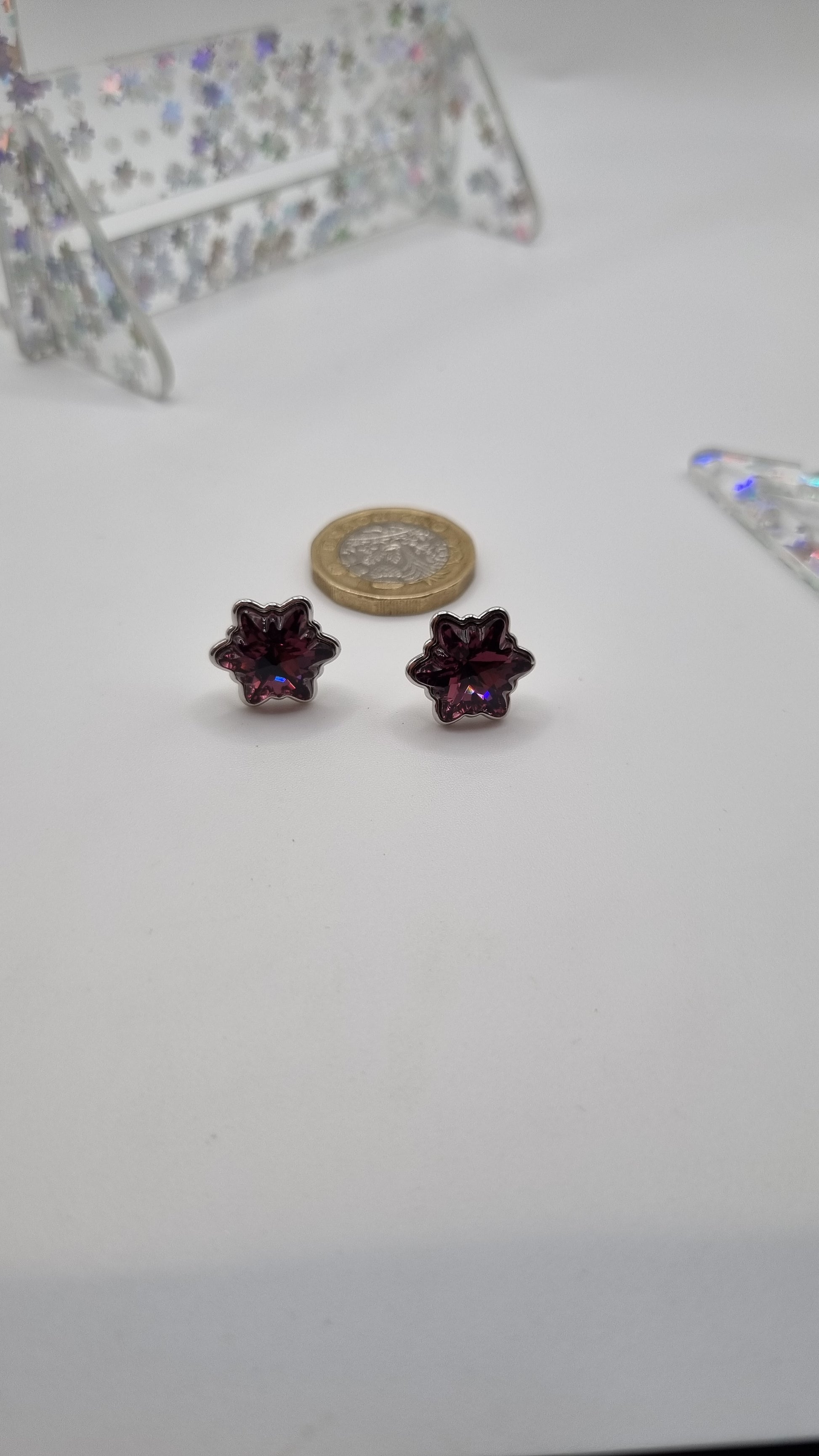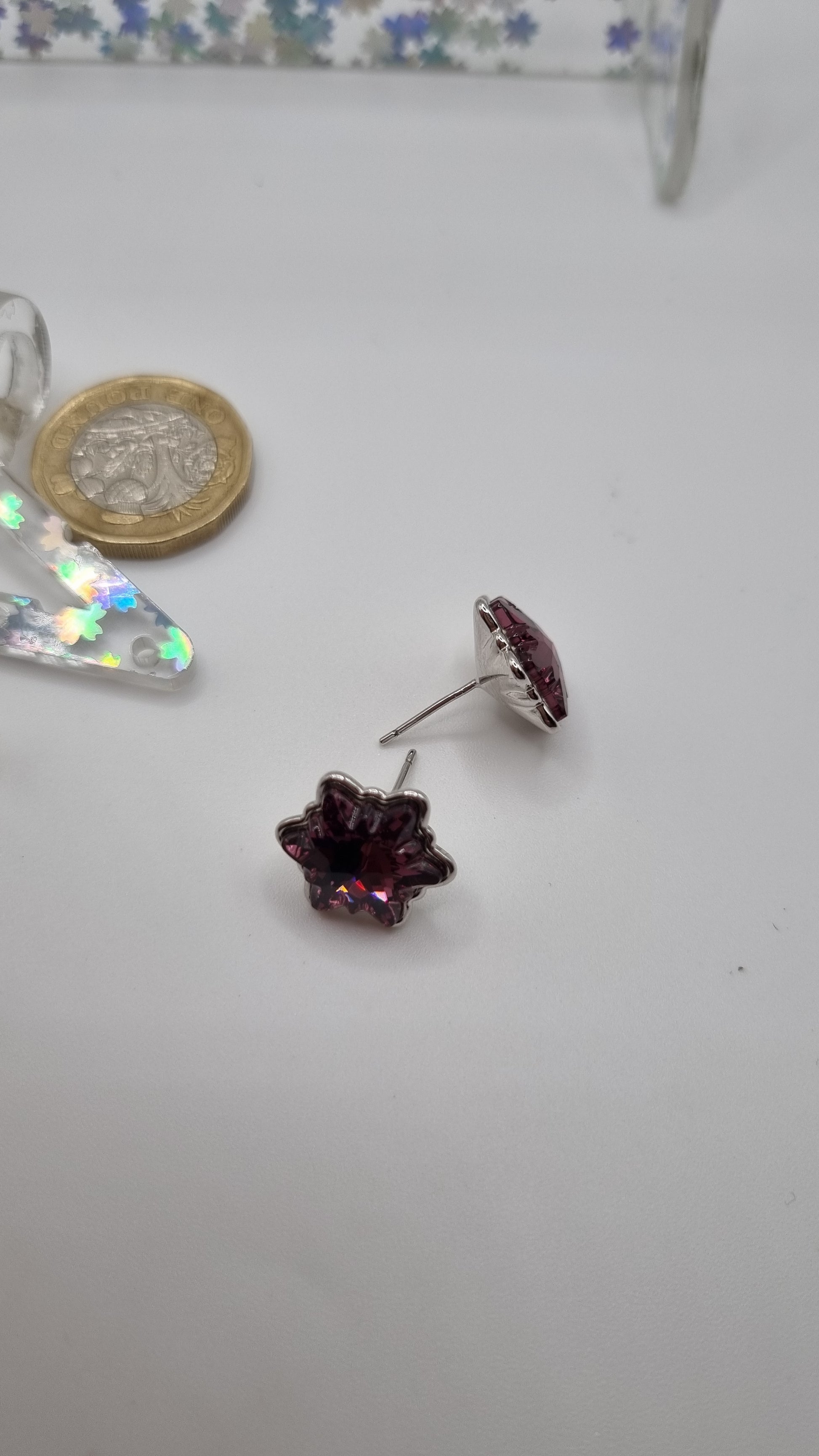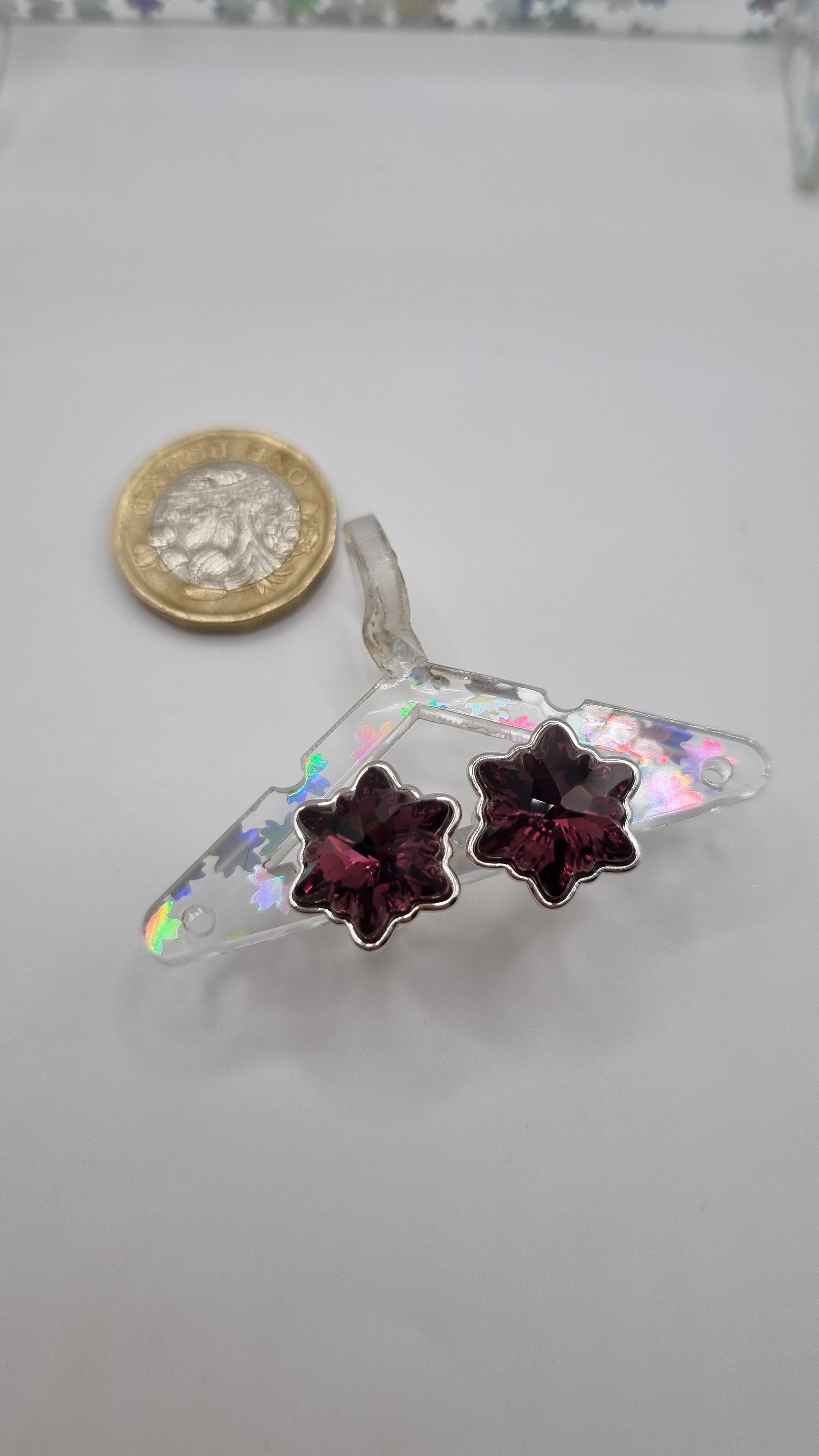 These platinum plated earrings featuring stunning burgundy-colored swarovski crystals and Ab accents are the epitome of elegance and luxury. Perfect for any occasion, these beautiful earrings will add a touch of glamour to any outfit.