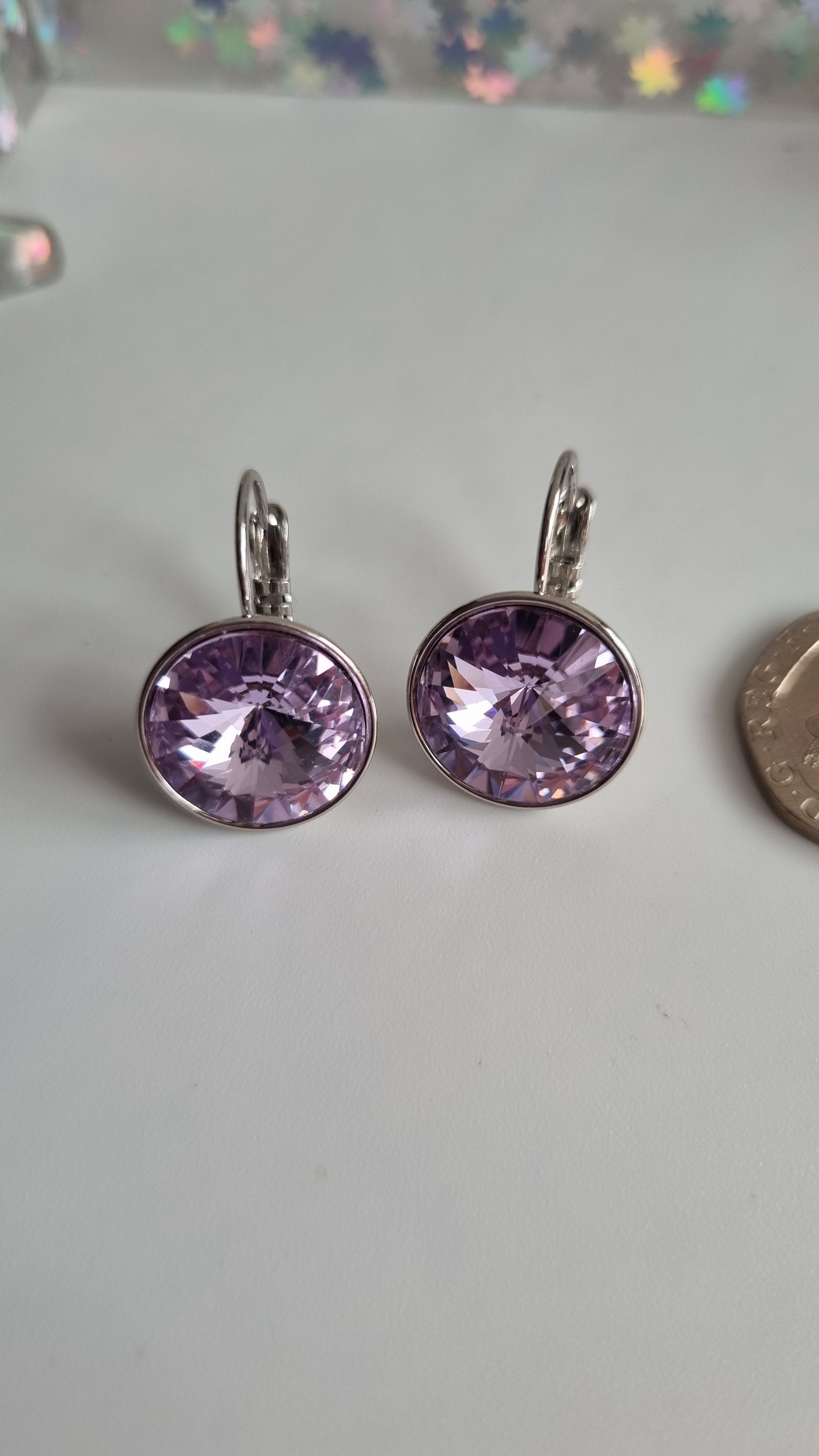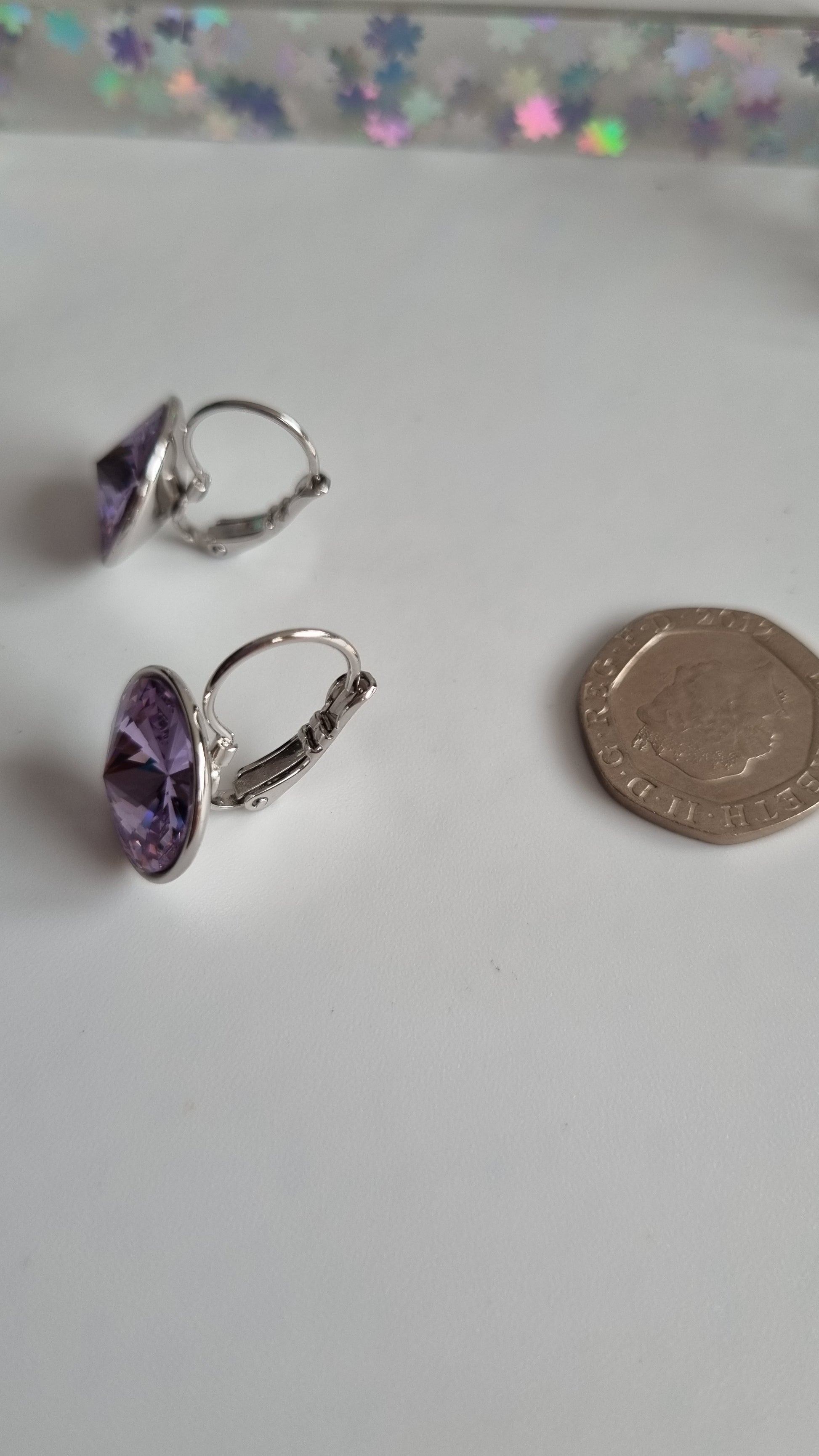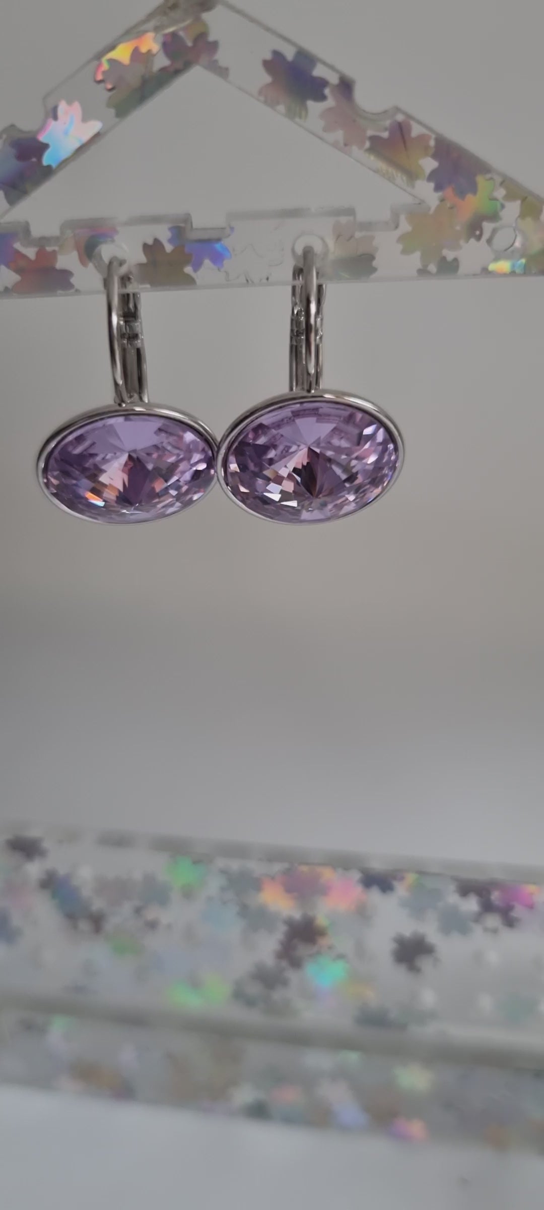 Platinum plated earrings with violet sw.crystal waterproof hypoallergenic