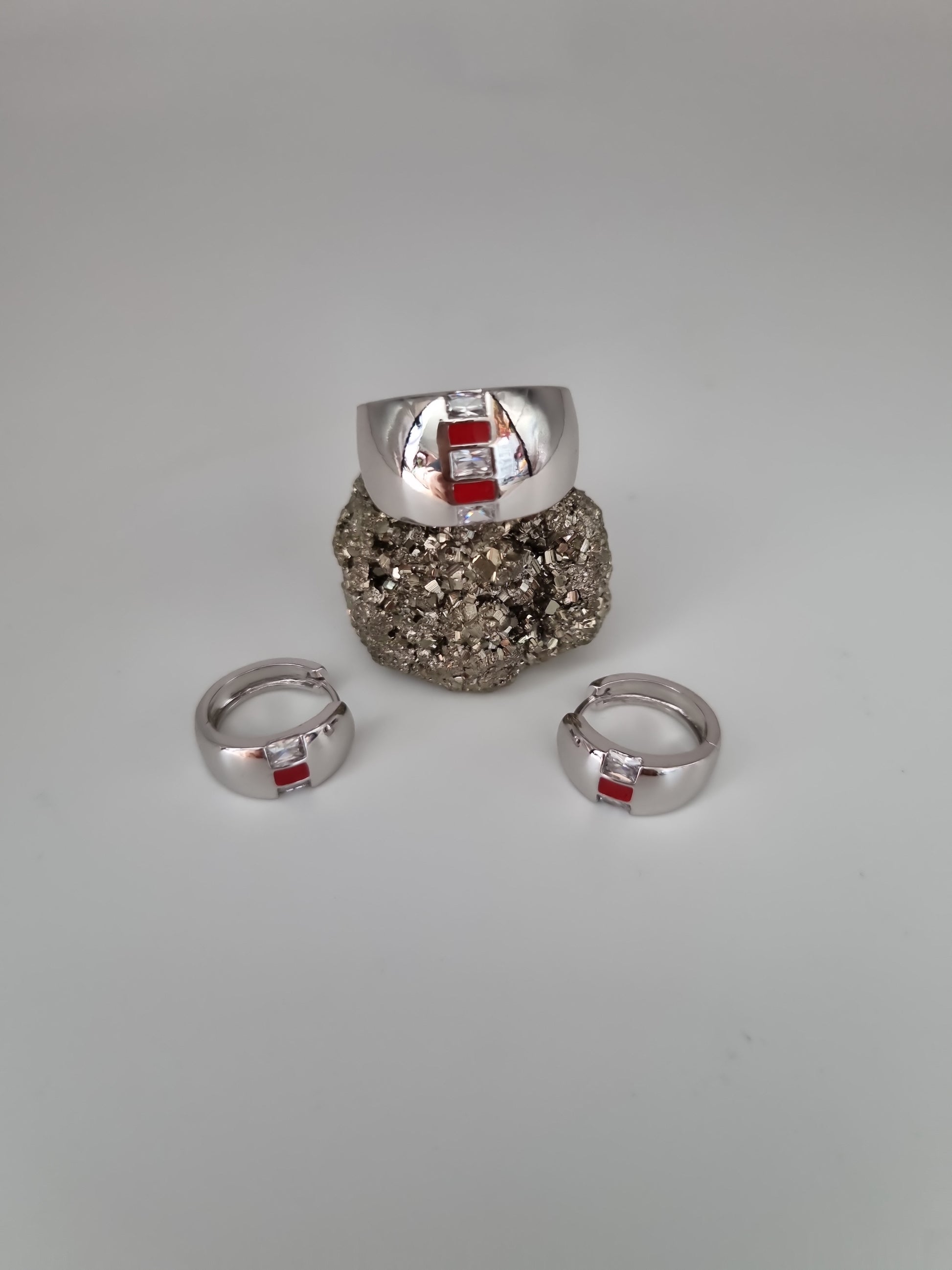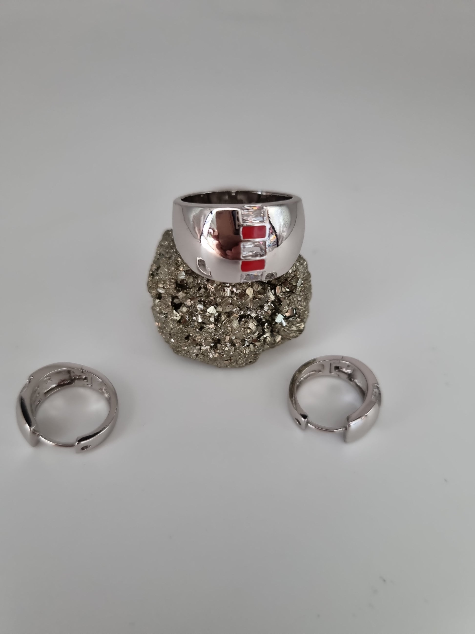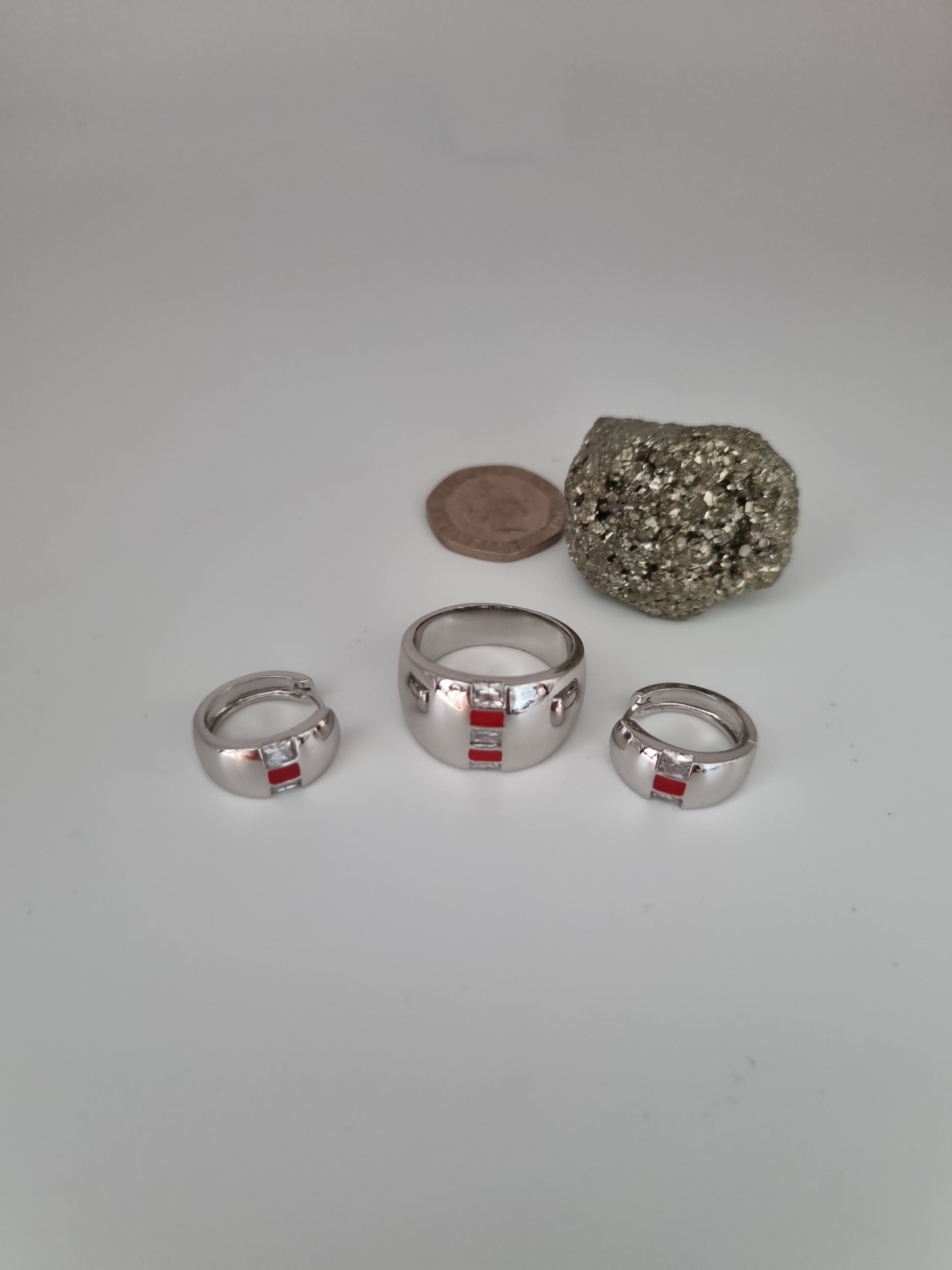Platinum plated set ring and earings waterproof free nickel hypoallergenic with zircon stone