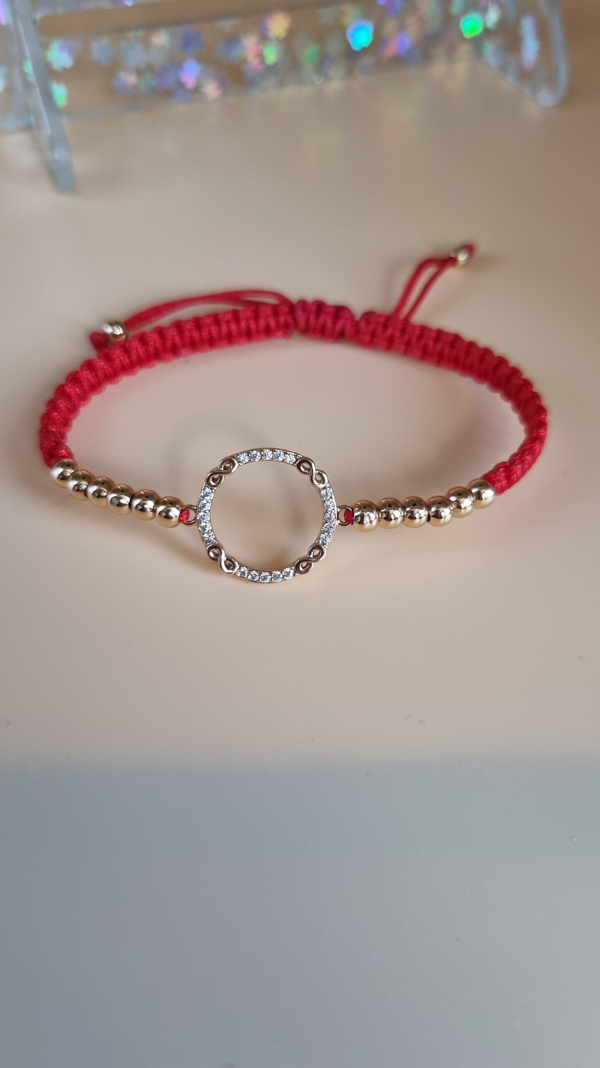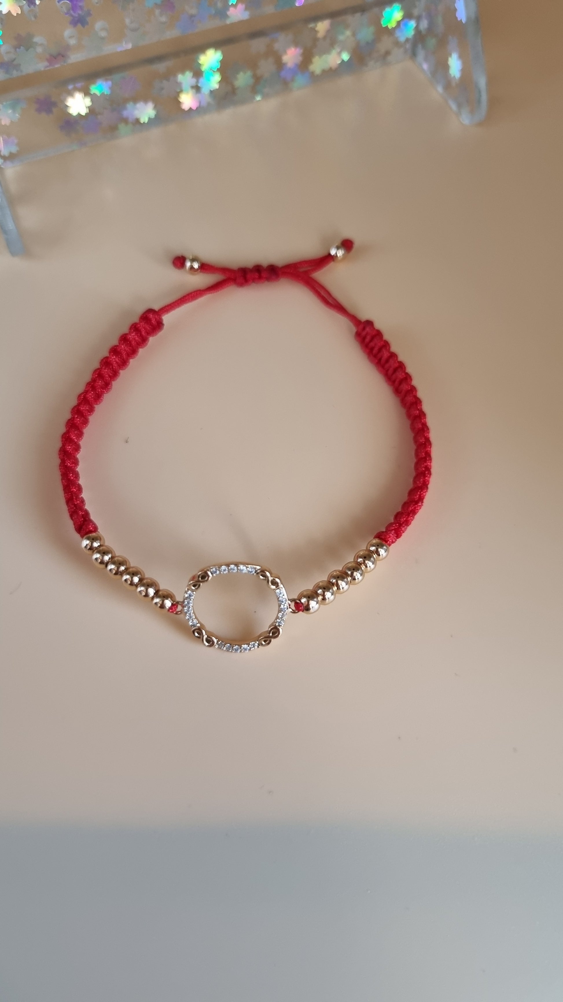 Red color bracelet with hypoallergenic waterproof beads and pendant