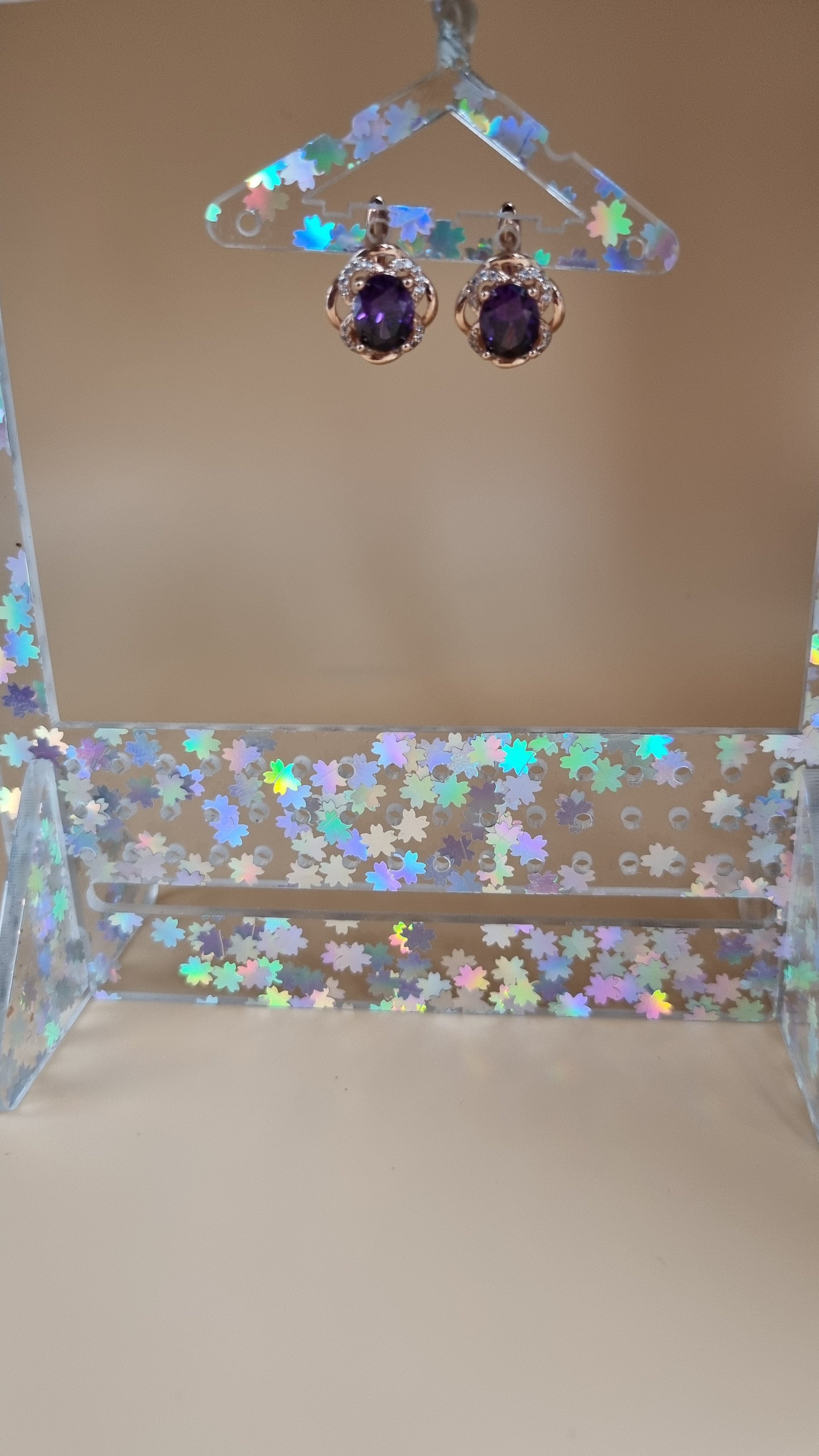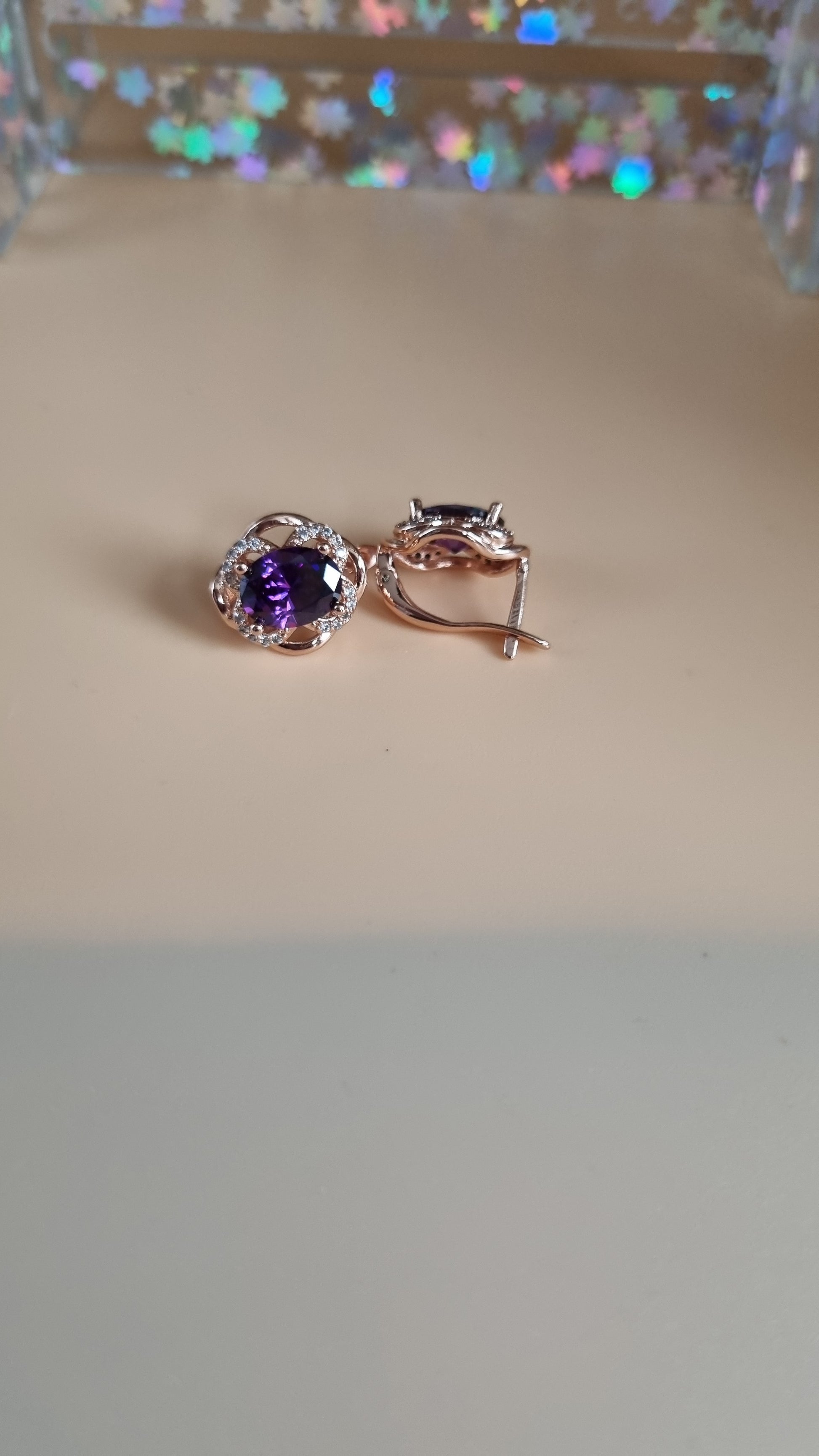 Rose gold plated earrings with zircon stone violet hypoallergenic waterproof