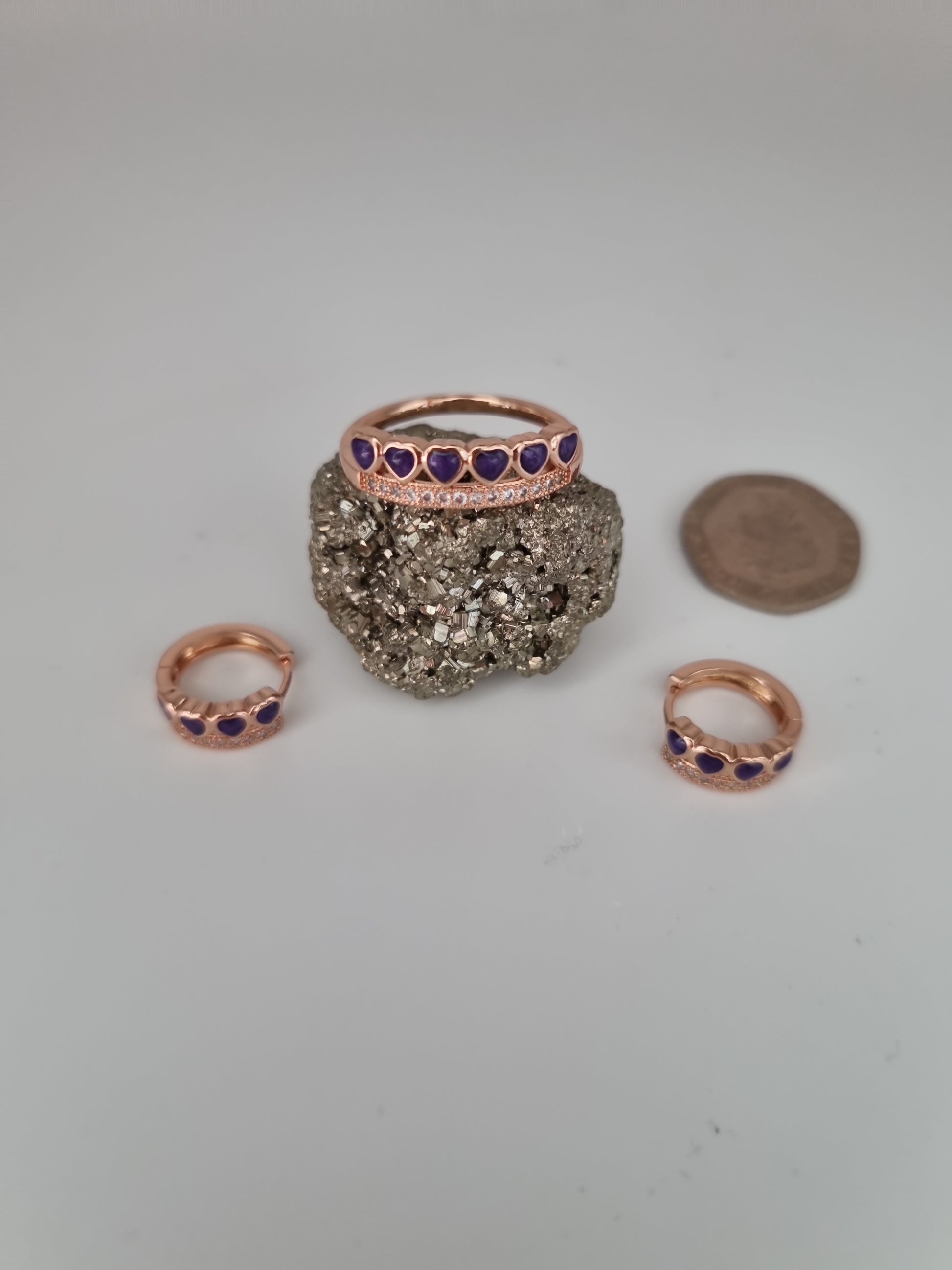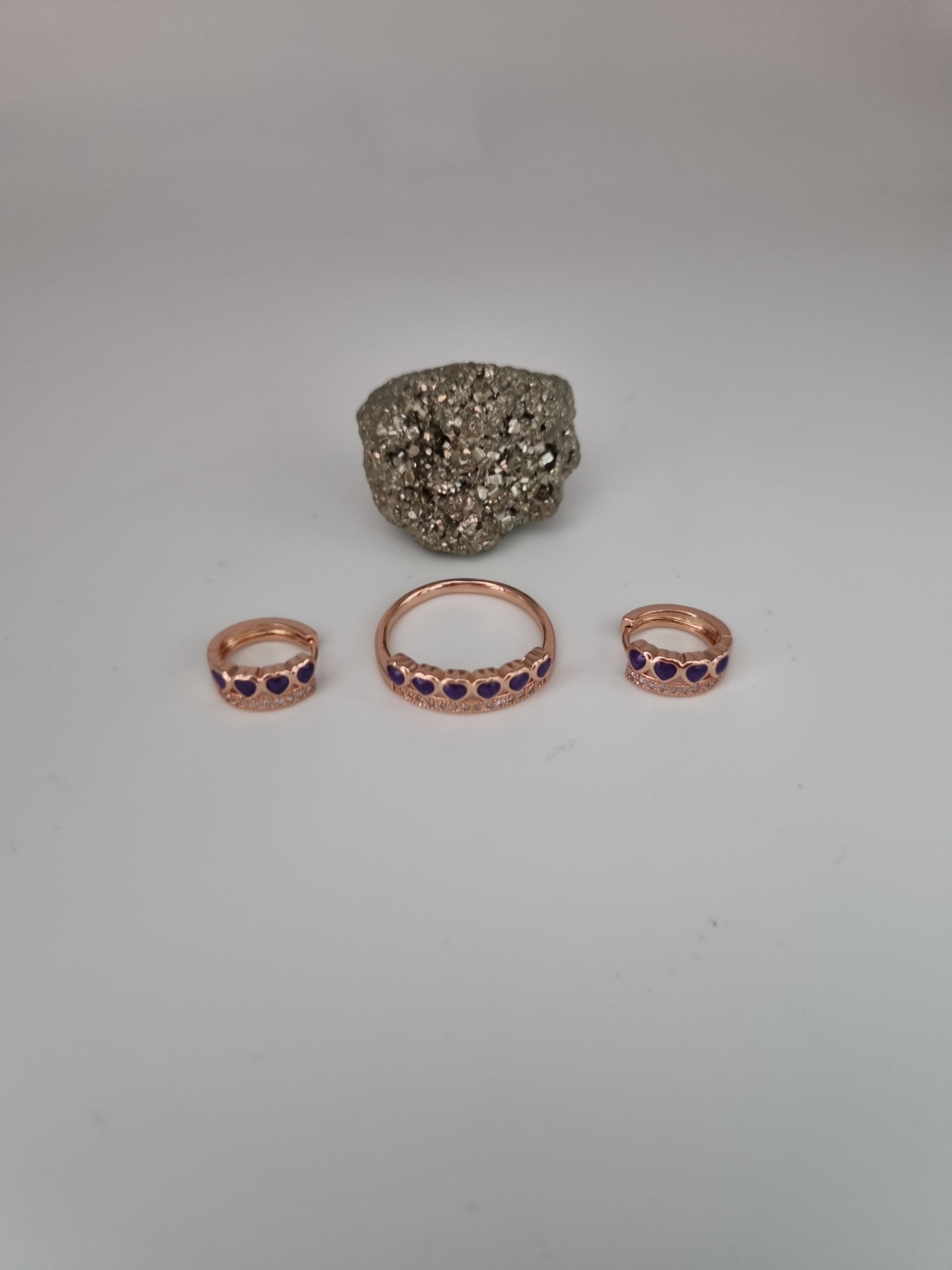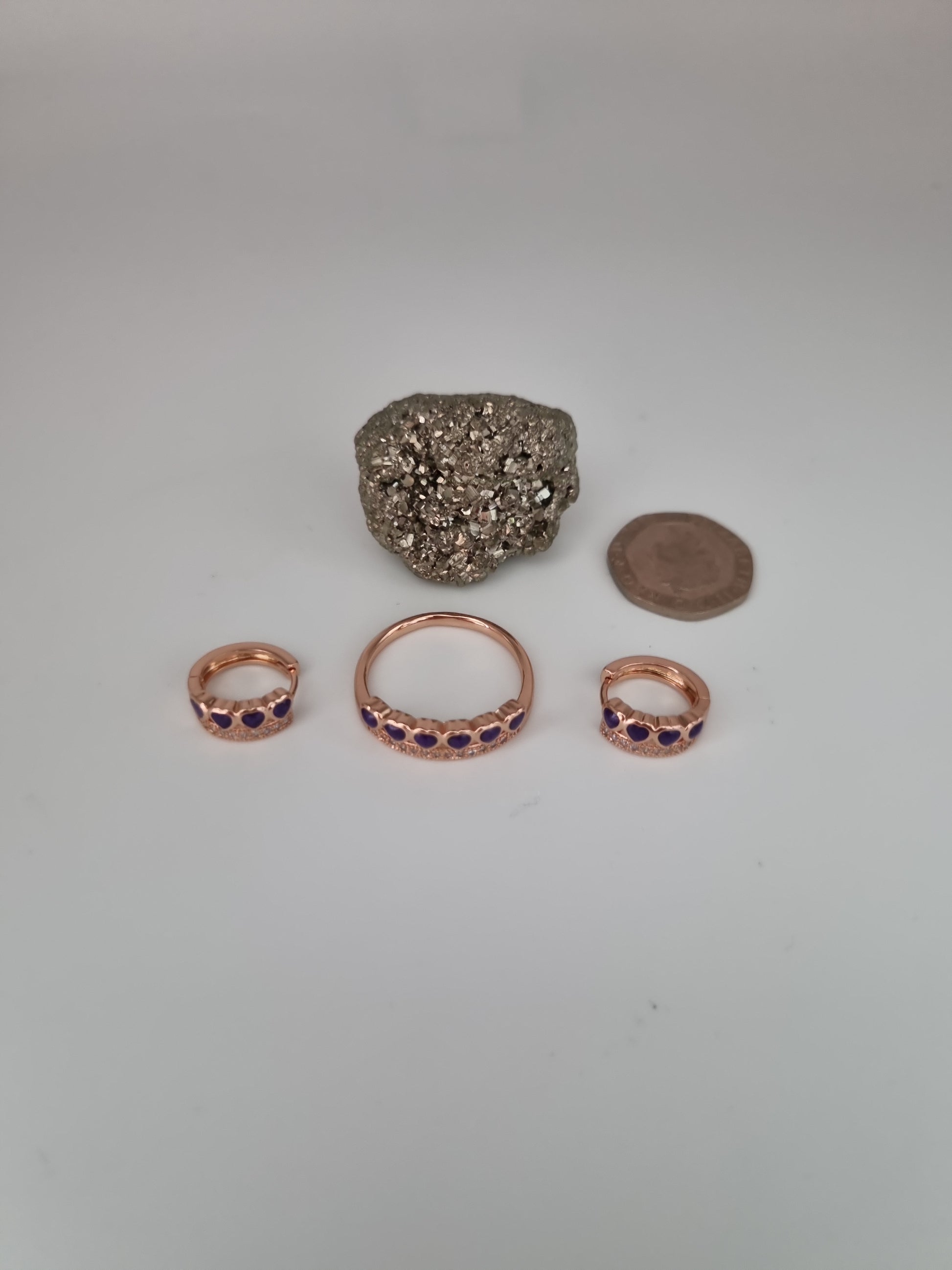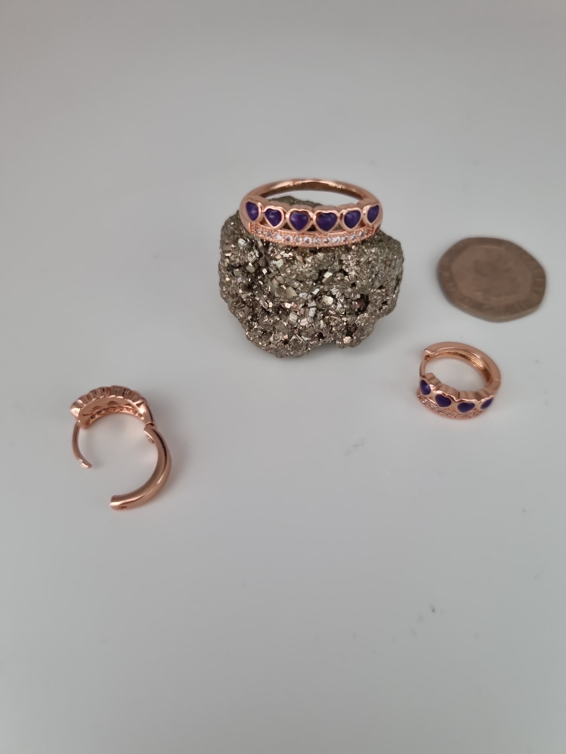 Rose gold plated set jewellery earrings and ring waterproof hypoallergenic with zircon stone