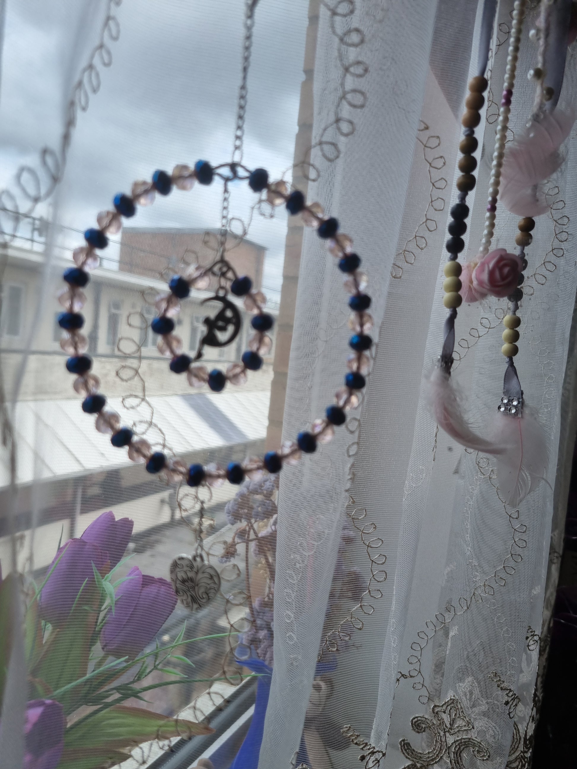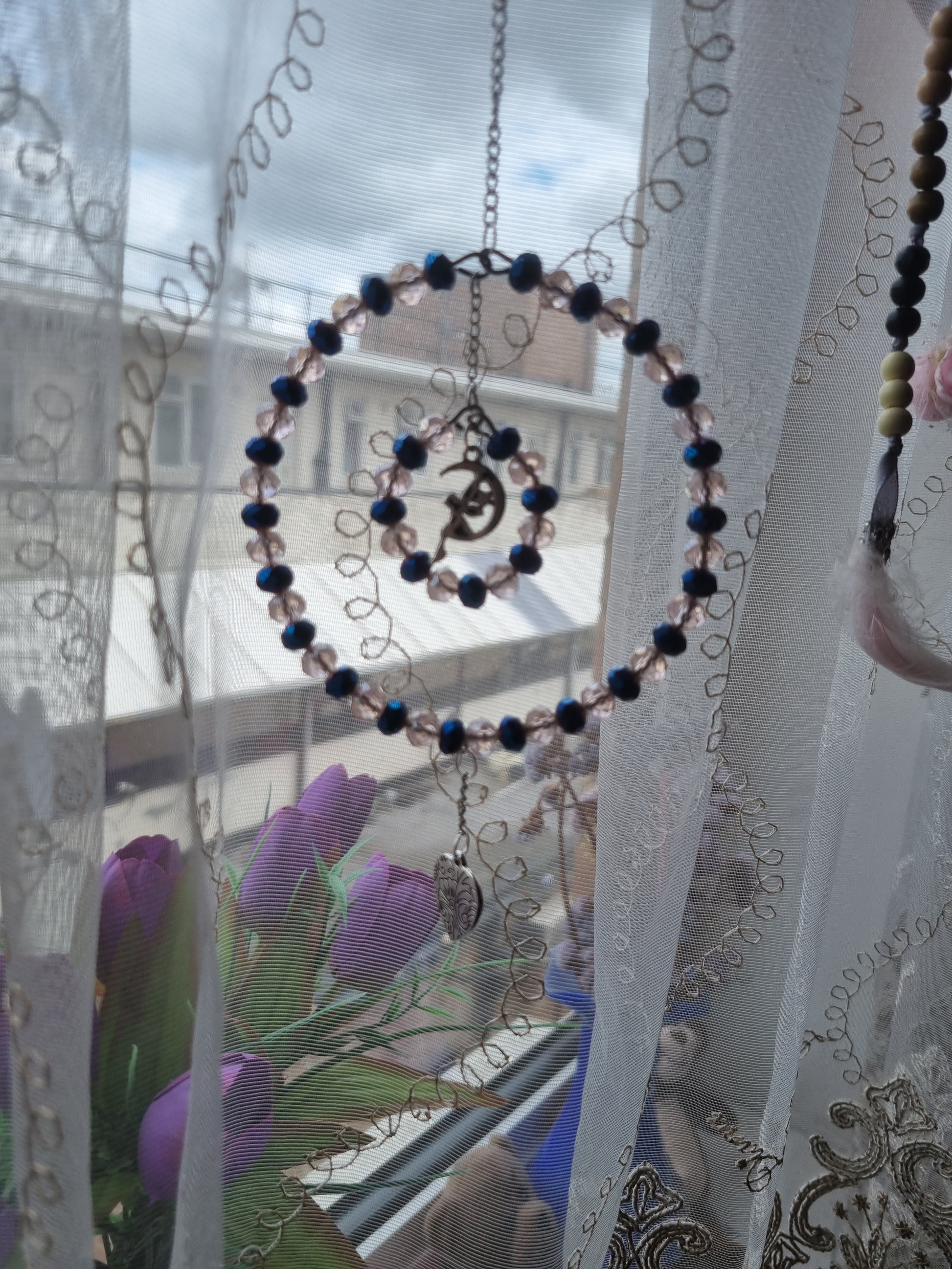 Sun catcher with glass crystal beads faceted beautiful color sparkling