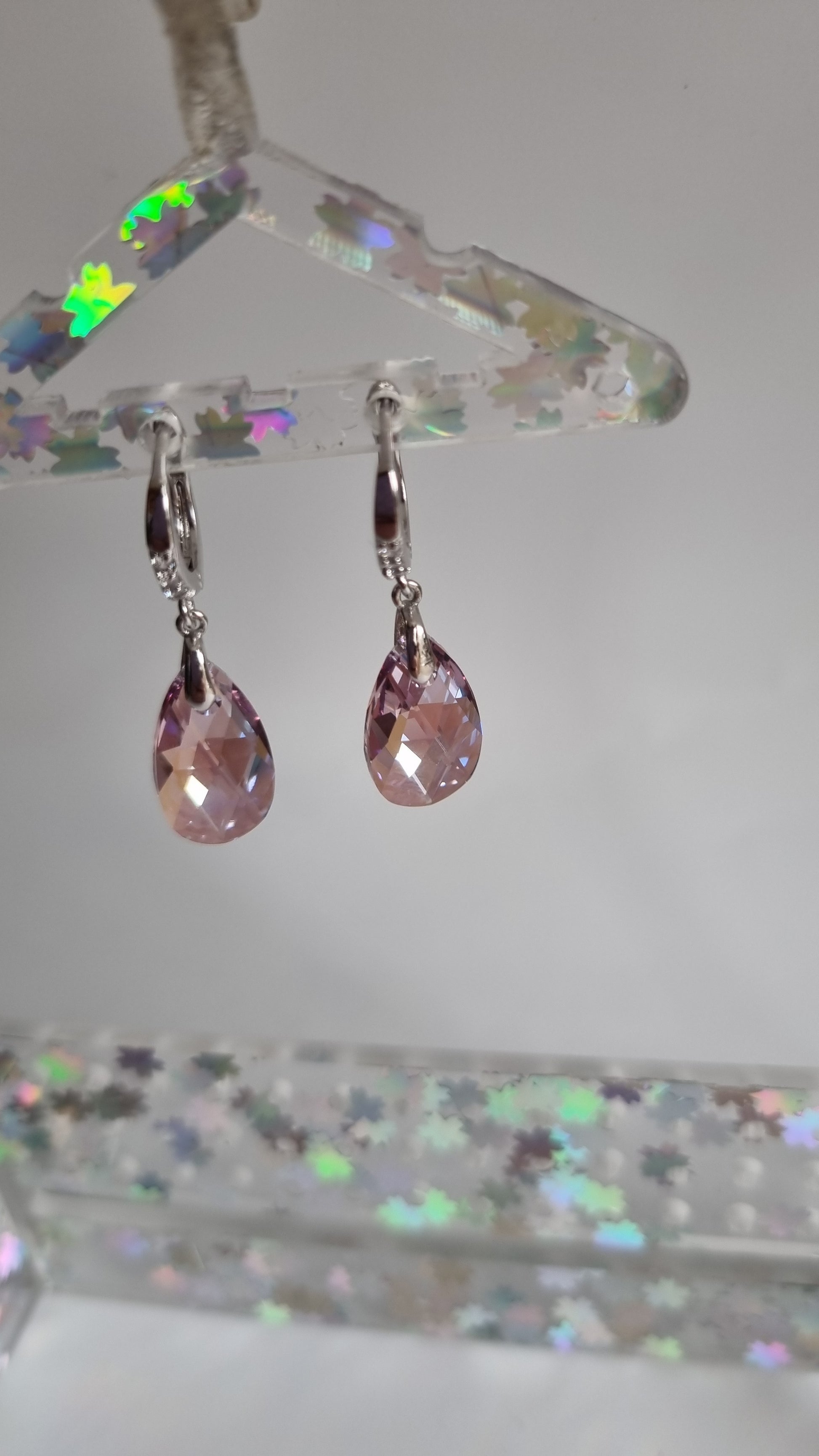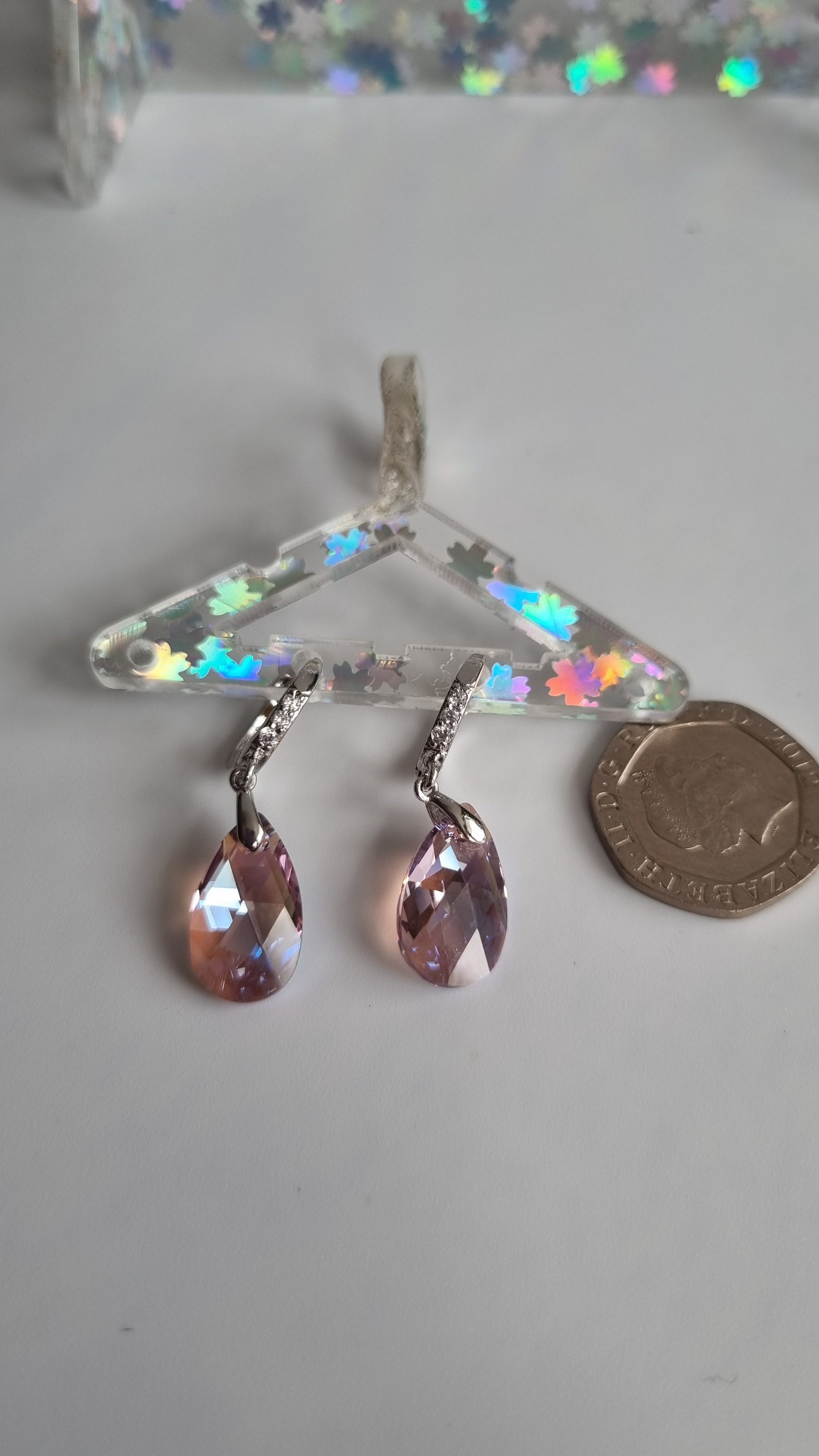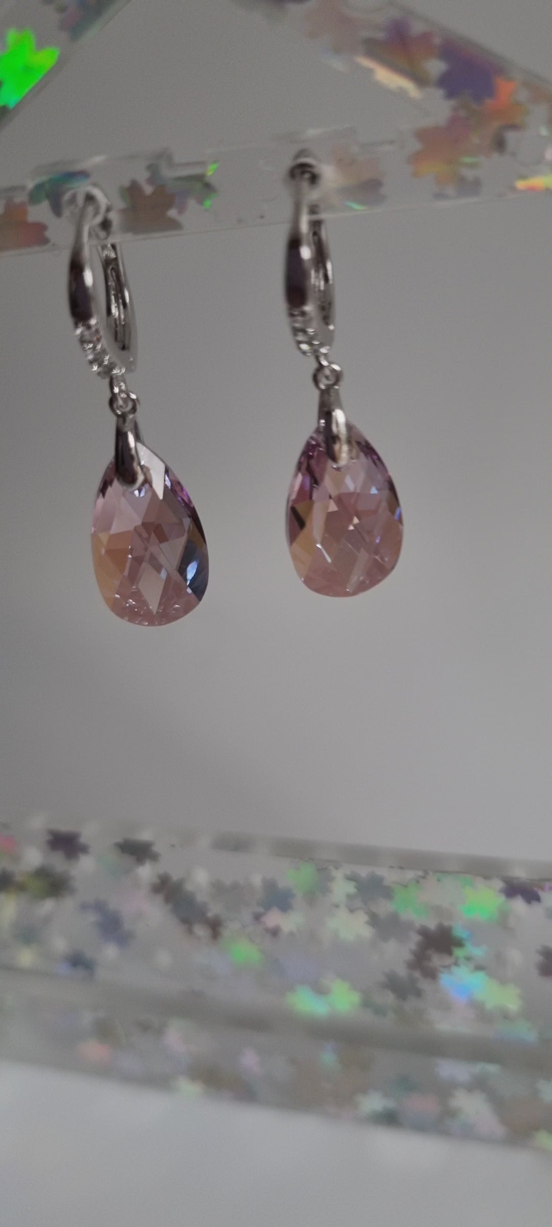Swarovski crystal dark pink with Ab earings platinum plated earrings hypoallergenic
